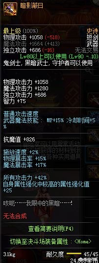 现在很多黑暗武士的玩家都喜欢带轻甲+巨剑,伤害非常高,再加上圣剑的属强和高面板。伤害很爆炸的。