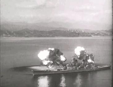 在莱特湾大海战时,武藏号的防空炮都在进行防空作业,突然1号副炮的3门155副炮突然对空开火,炮口风暴直接将附近的敞篷的25毫米防空炮连人带炮直接掀翻,其防空火力顿时就弱了一半,日本在开炮前会通过警铃通告舰员,让裸露在甲板的人员拆除防空炮的瞄准装置然后撤离。但是当时已经开始防空作业了,炮声已经掩盖任何声音,所以才会出现之前说的那一幕。 休息主炮后面的穿着白色衣服的船员,应该是躲避炮口风暴