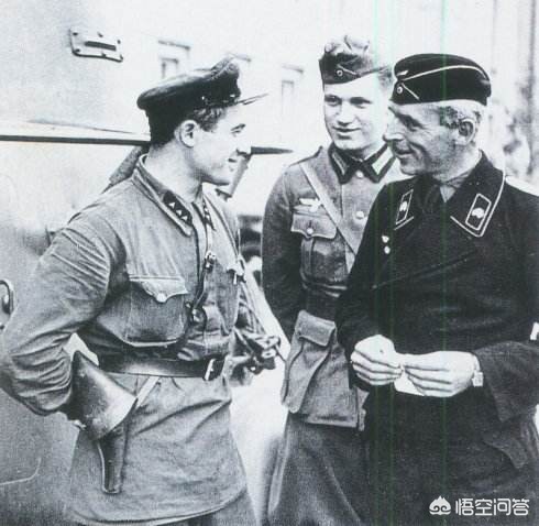 而且在开战前,德国已吞并了奥地利与捷克斯洛伐克,德国整体的工业水平超过法国,更别提比利时荷兰,至于波兰罗马尼亚等可以无视,基本是农业国。所以,欧洲列强并不是那么强,本质要弱得多。当然,如此快地战败还是令人意外,但抵抗的意志之低也同样令人吃惊,包括法国。或许,被第一次世界大战吓破胆了吧。不过波兰还有一个情况,就是背后被人捅了一刀,灭亡时间大大缩短了,德军实际打了半个波兰。下图,苏德会师波兰,双方指战员正进行友好亲切地交谈。