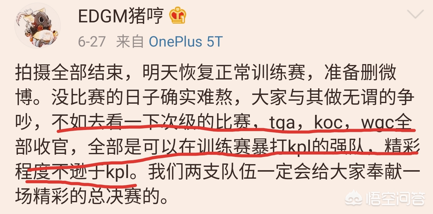 能出现这样的阵容说明了TGA和我们平常看到的KPL比赛思路有很大的不同,更开放的BP,更多的奇思妙想,而本身能参加TGA这类比赛的队伍实力就不容小觑。借用猪哼教练最近发的一条微博来说明: