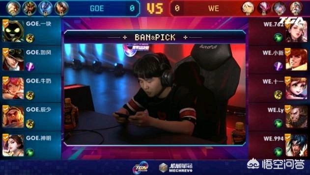 这一幕发生在2018年6月28日TGA夏季总决赛王者荣耀项目WE对阵GOE的第一场比赛中。这里给大家科普一下TGA大奖赛是一项基于腾讯游戏竞技平台的重要品牌赛事,而总决赛前两名即可获得进军KPL预选赛的名额,简而言之TGA就是KPL预选赛的预选赛之一(还有QGC等等也是)。