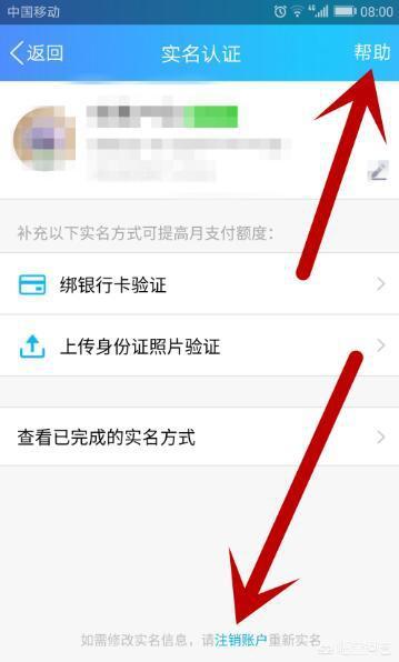 4、修改实名信息要先注销再认证。在最下面可以看到有如果修改信息,请注销账户,可以在这里点击先注销。如果第一次不懂的话可以点击右上角帮助:
