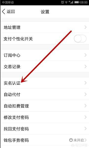 4、然后在设置页面中选择红色箭头所指处的“实名认证”。