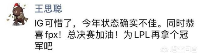 从IG输比赛之后的朋友圈内容来看,王思聪对于这个事情的态度还是比较平静的,也是表示IG这一年的状态并不好,同时还在恭喜FPX进决赛。