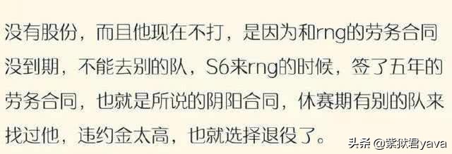 在此前有网友在网上爆料UZI退役是因为RNG把合同卡死,UZI是没有办法承担这些违约费,最好的办法只能选择退役。现在风哥发文的内容和此前的爆料不谋而合,这也不得不让网友联想到RNG。据说风哥当时离开RNG也是和RNG签署了一份合同,这一份合同就是规定风哥不能在三年之内回到LPL。从S7结束之后风哥确实离开了LPL,并且三年过去了风哥也没有再次回到LPL。