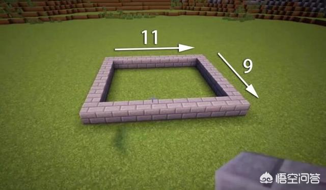 先在平地上用砖块建11乘9的地基,再将墙壁垒高至3哥高。