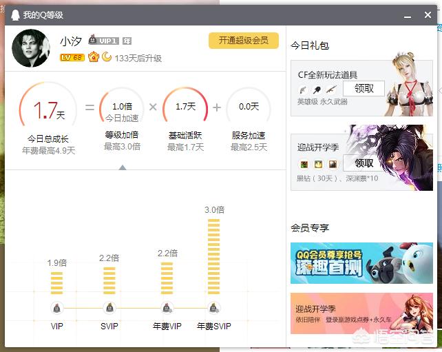 刚玩qq的时候,会员给我的感觉就是红名,好友排前,什么好友上线铃声下线铃声,其他没什么特别的地方。svip7,黄钻7,红钻7,绿钻7,心悦2。现在全都没有续费的……包括游戏也在也不充一分钱了!90后老了~交给00后了