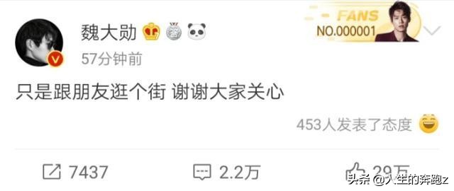 魏大勋发文表示只是和朋友逛个街,谢谢关心。很多人虽然觉得魏大勋这是在澄清绯闻,但是他的这些解释似乎有点太过于牵强,但是网友也表示他说的这个朋友有很多情况,可以是女朋友,也可以是普通朋友,所以对于魏大勋的这个解释,大家似乎并不买单。