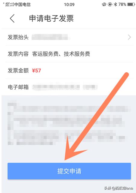 6、在出现的页面中,填写发票抬头、电子邮箱等内容,最后再点击“提交申请”,如下图所示。