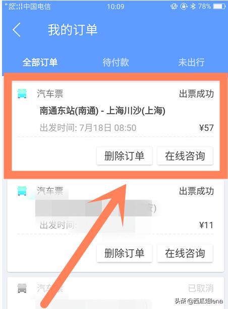 4、在出现的页面中,找到并点击需要申请电子发票的订单,如下图所示。