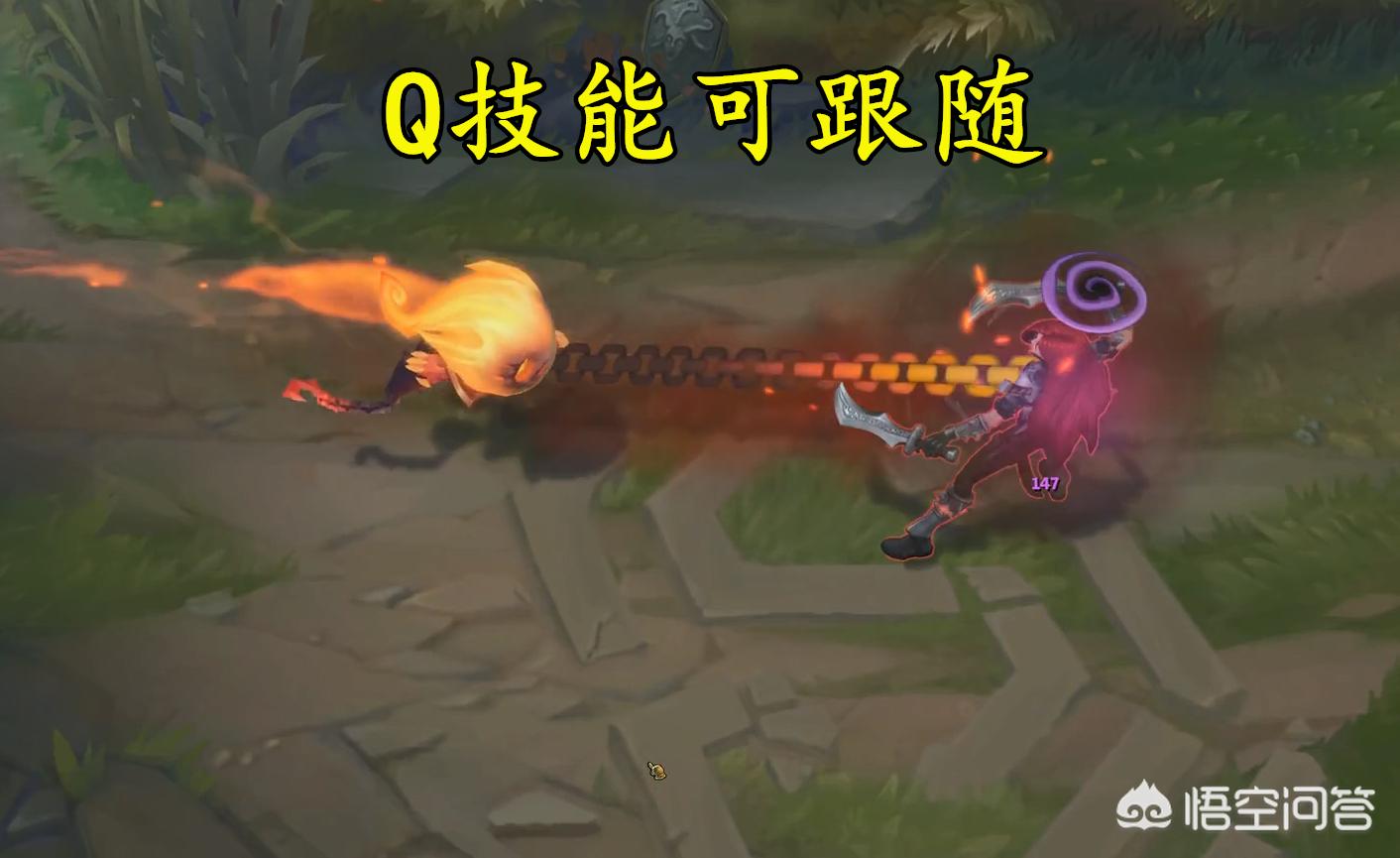 有玩家还做了一个很有趣的测试,阿木木用q来搭老司机塞恩的车,通过GIF图我们可以看到,阿木木q中开大之后的塞恩,会一直跟随着塞恩直到他停下来。