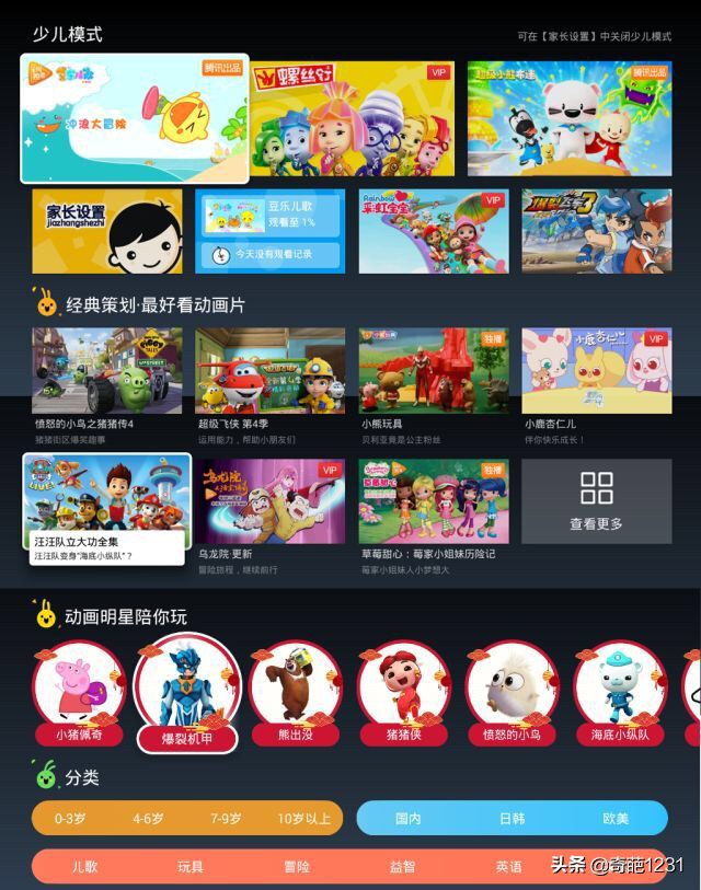 腾讯视频TV端也叫做云视听极光,是一款可以安装在智能电视、电视盒子、投影仪上,供全家人一起观赏的网络视频APP。在这种全家共赏的家庭场景下,云视听极光拥有大量的低龄用户。为了给这些最年轻的腾讯视频用户提供最方便、精准、安全的用户体验,云视听极光特别设计开发了能够让父母省心的少儿模式。