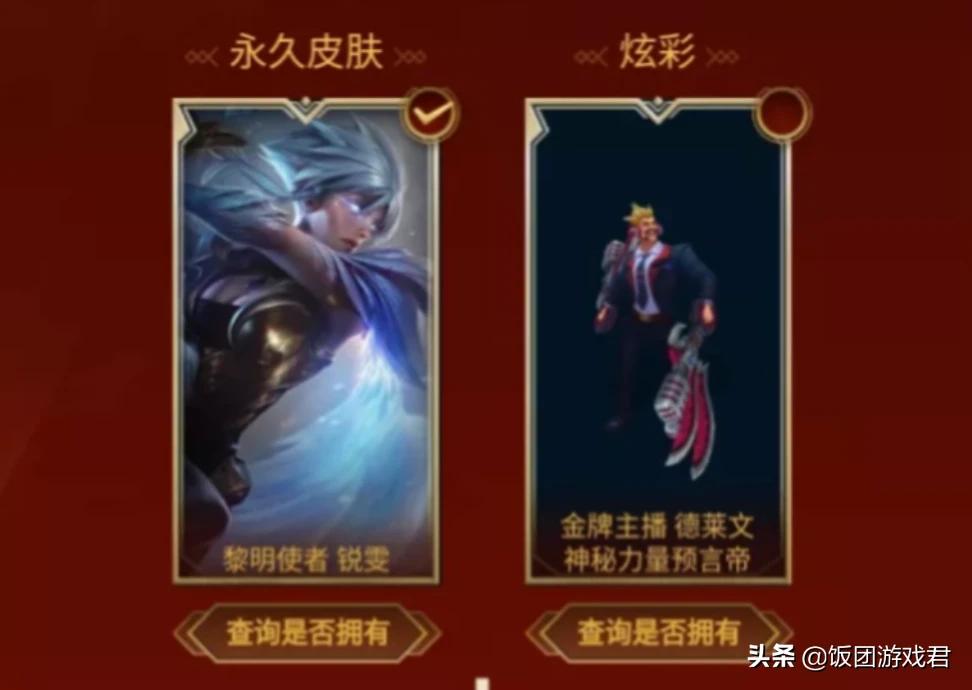 这次战斗之夜可以看出来氪不氪金的差距,氪金就能升级宝箱拿到很好皮肤,比如上面那位黎明使者锐雯,不像饭团脸黑拿到一个血色精锐泰隆,男刀不怎么玩,不过说到底还是白嫖,拿到皮肤也还是很不错的。