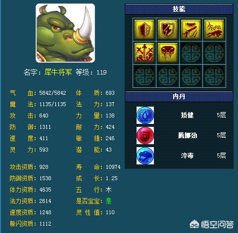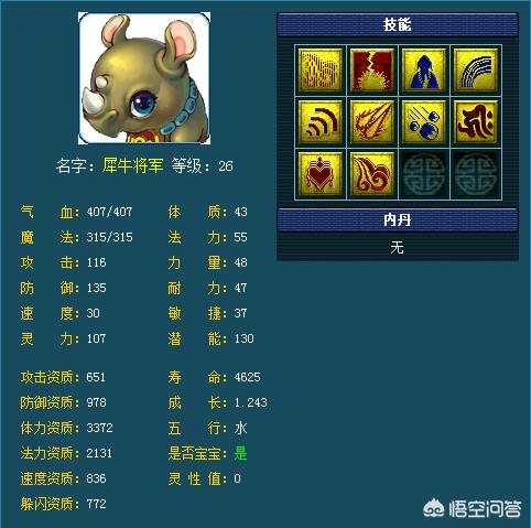 死亡和法防是两个比武很吃香的技能,带有这两个技能能打成功就价值不菲,何况只有7个技能的犀牛将军呢,毕竟市场上犀牛将军数量就不多,从合成到打成难度也是杠杠滴,也算是超牛吧。