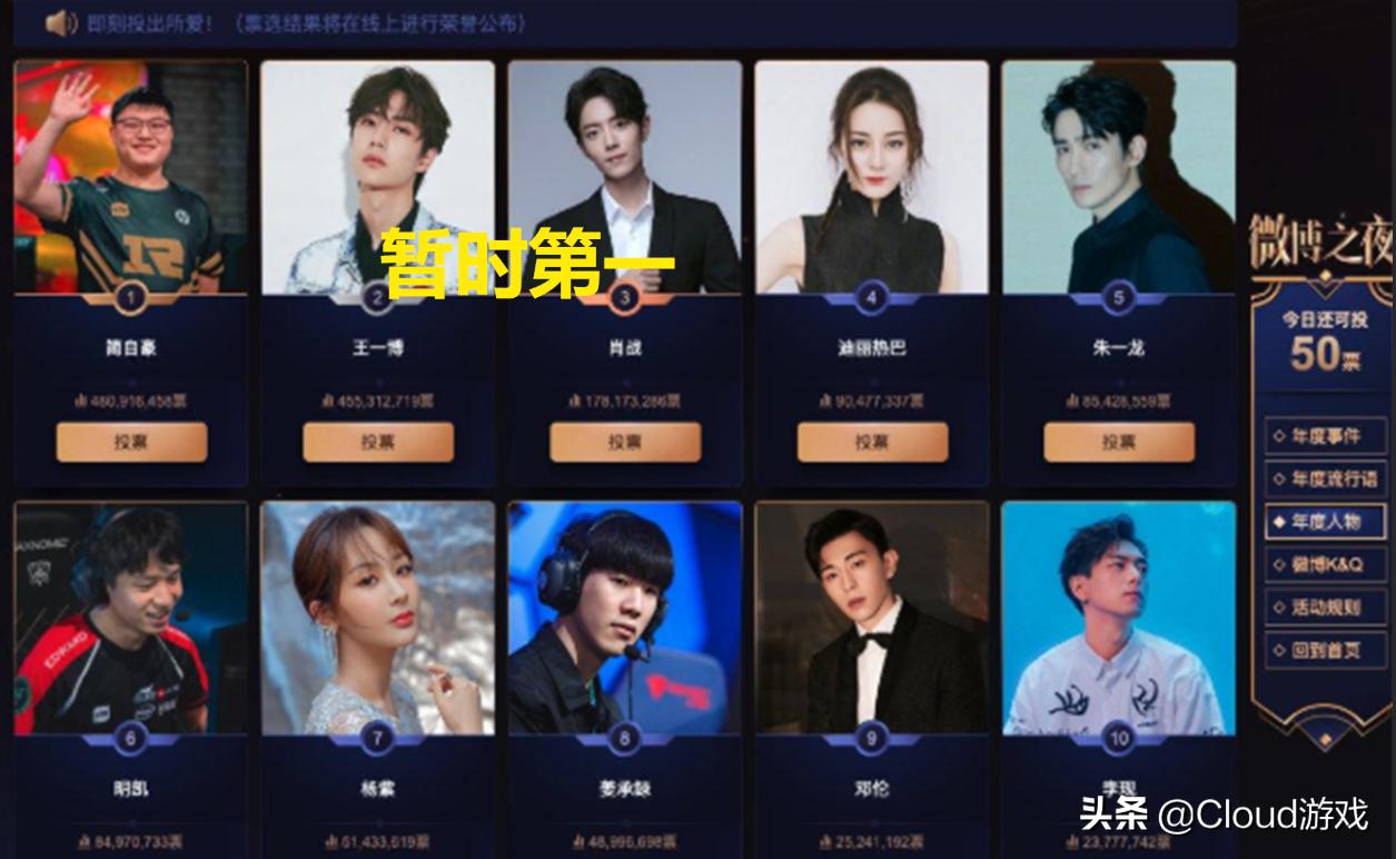 因为2019年刚刚结束的原因,几乎各行各业都在做一些年度总结。热门社交平台微博就在前段时间开启了微博之夜的年度活动投票。该活动也并非是第1次开启,以往的热门人物均是娱乐圈中的热门角色,但随着英雄联盟赛事的发展,其影响力也在逐渐上升,今年的参赛队员迎来了电竞选手们的参加。