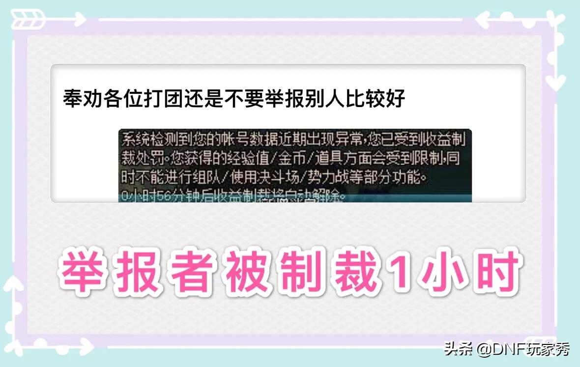 DNF玩家打团举报了飞机团,结果自己被制裁一小时,这是什么意思