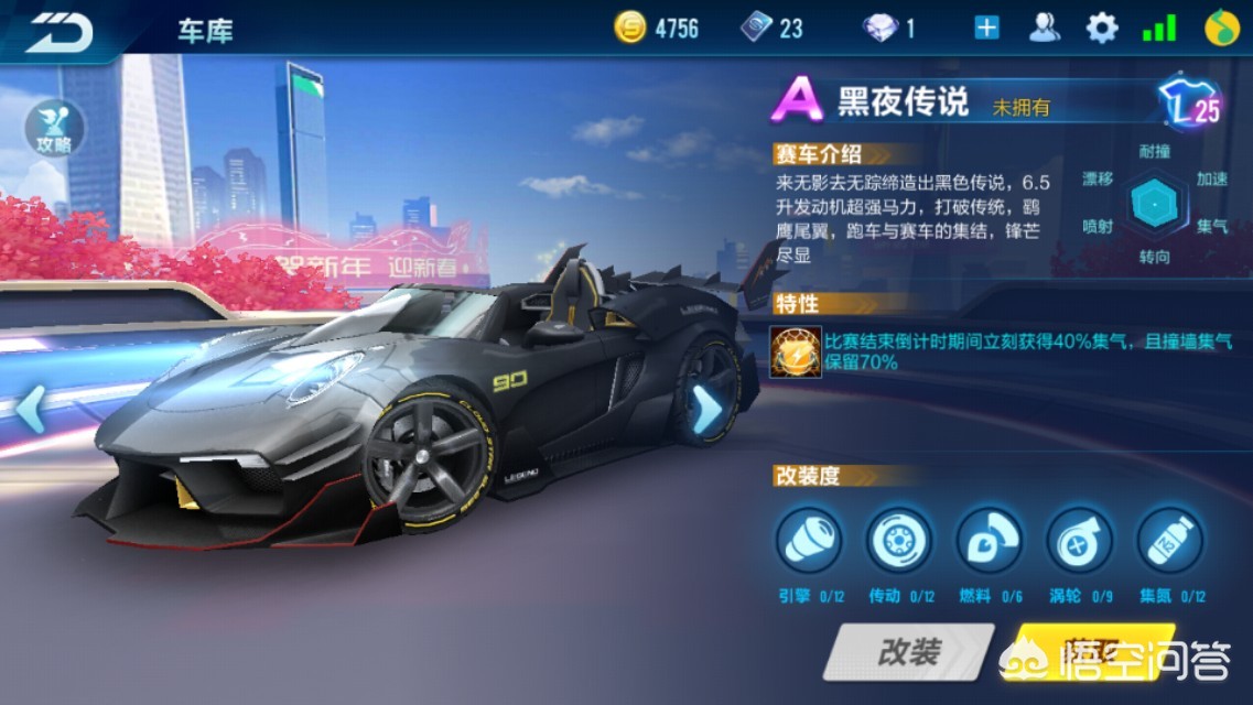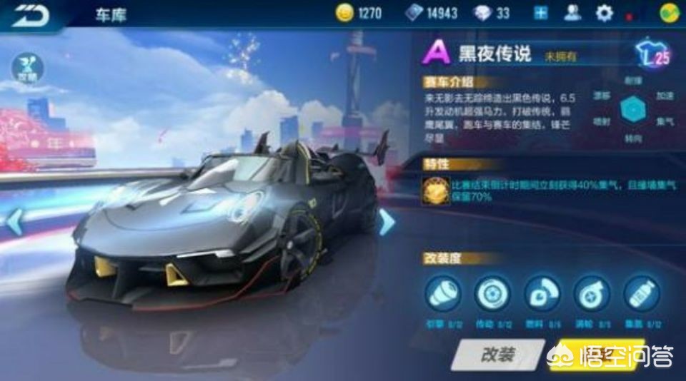 QQ飞车手游里的A车黑夜传说属于A车中综合性能比较好的车了。