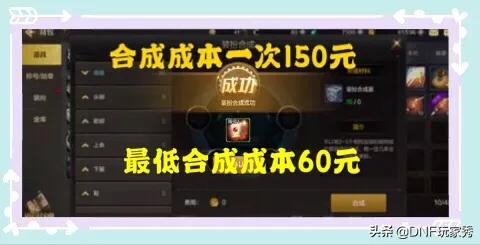 至于花费,如果你是绝世欧皇,可以每次都用最低几率合成,而且每次都成功,那么,获取一套天空套的最低花费为480元!