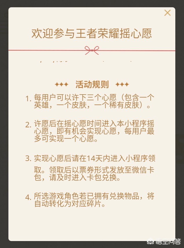 1.参加方法:微信小程序【王者荣耀摇心愿】