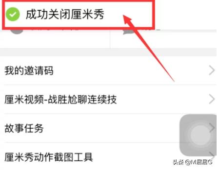 4.在页面处手指向顶部滑,来到最底处便找出“关闭厘米秀”的字样,点击此框。