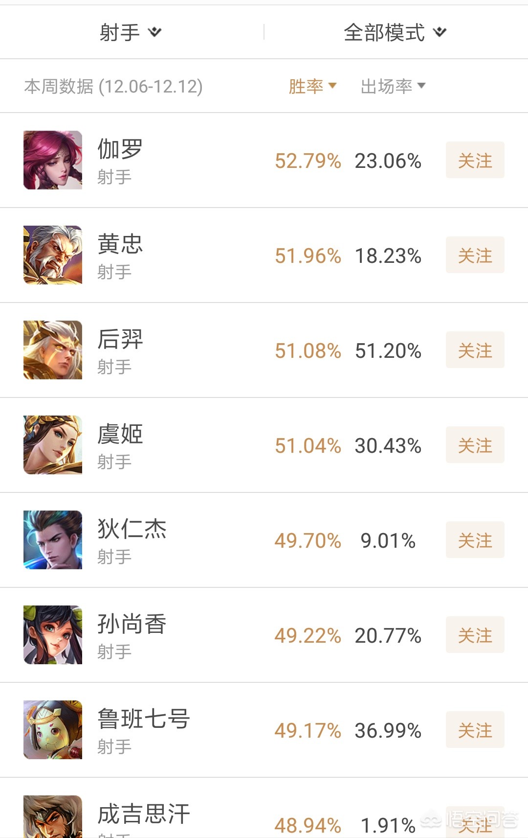 大家好,我是彼岸。看完下面数据你就会明白为什么伽罗胜率超过黄忠虞姬。