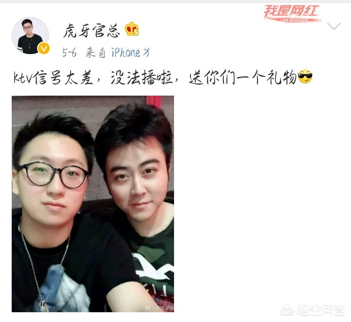 ②官总发布微博称“ktv信号太差,没法播啦,送你们一个礼物”还加上了一张官总与蛇哥的合照,礼物?何为礼物?大家应该都知道现在官总直播间的粉丝有一些都是蛇哥的粉丝,因为蛇哥去了虎牙之后,才开始看官总直播的。既然官总说要送粉丝们一个礼物,那就极有可能是蛇哥回归的消息了。