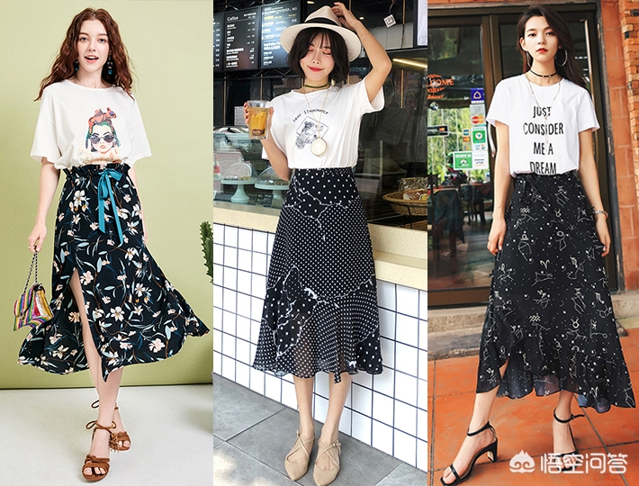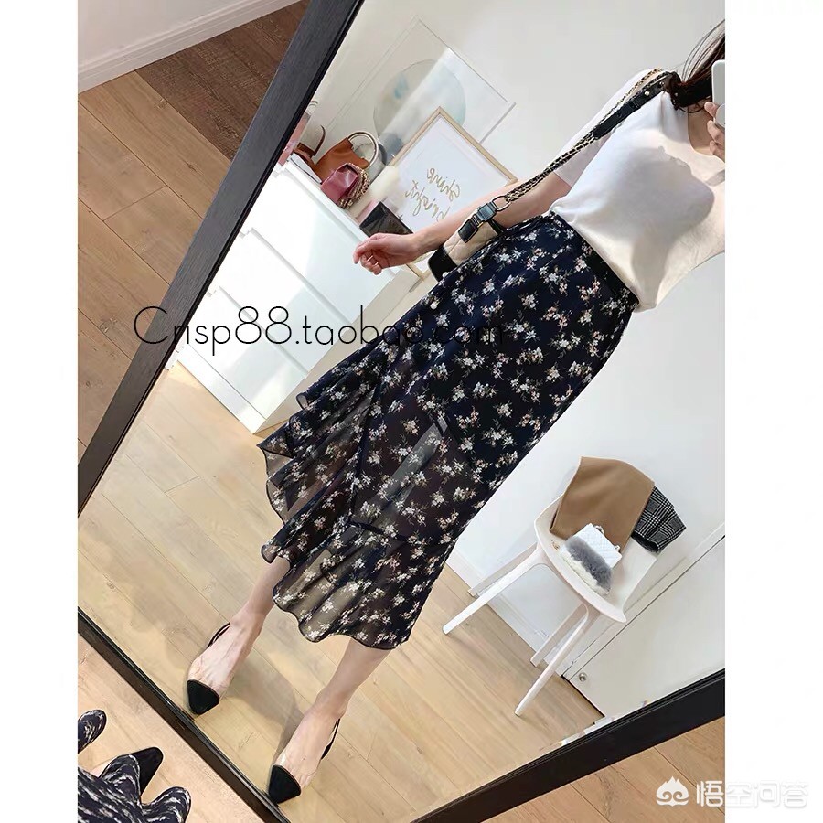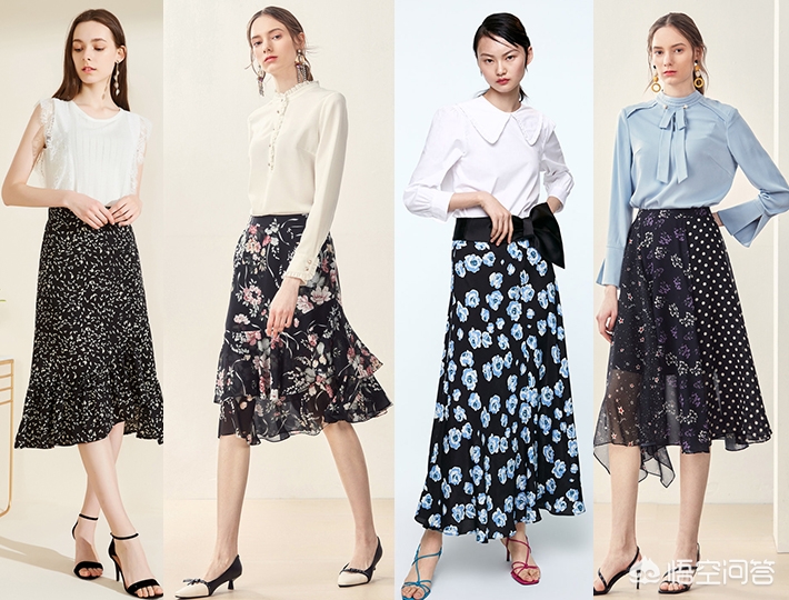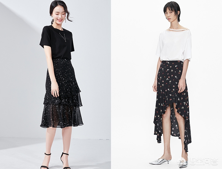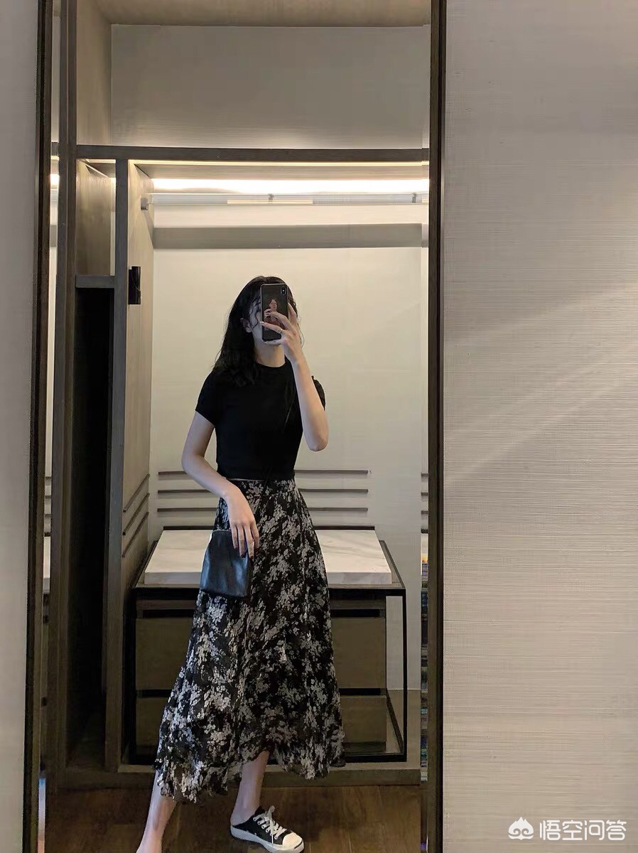 黑色碎花裙有种冷静自持的气质,仿佛黑暗中孤独的行者,自有一份孤傲在身,繁花下又藏着一颗柔软的心!黑白配是万年经典!但可以用不同款式的上衣,应用不同场景: