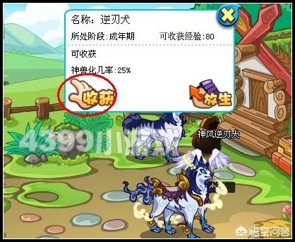 逆刃犬进化为神风逆刃犬之后,你就可以把它收获,点击收获