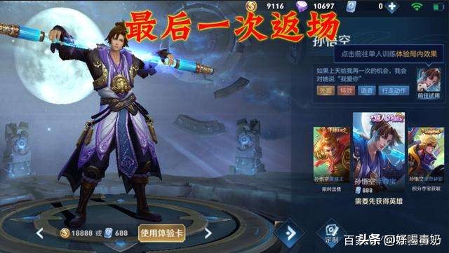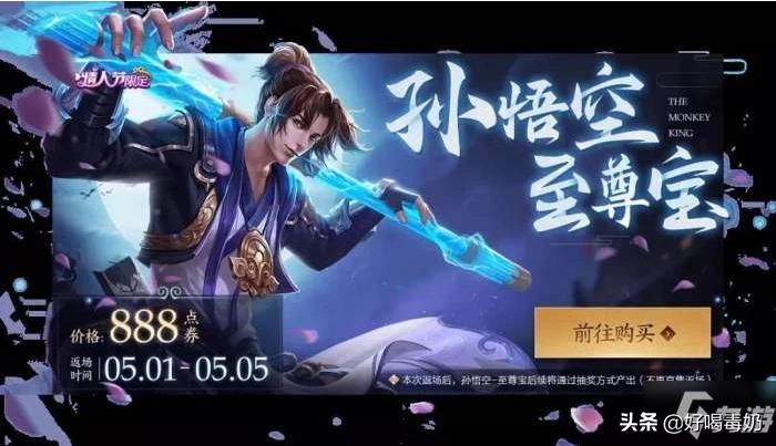 ps:此次至尊宝皮肤返厂最后一次之直售,以后会以抽奖的形式上架的。