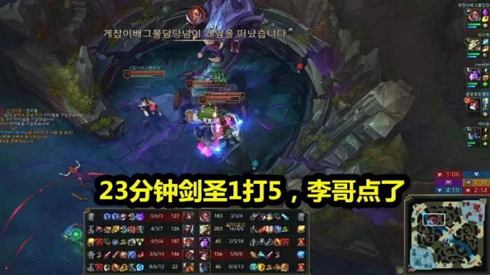 李哥,利用刀妹的优势,快速将兵线推到对方的塔下,而队友则是去野区干扰剑圣刷野,导致剑圣无法大量的吃到兵线。在中路的一波混乱团战中,李哥拿到了三杀,随后在支援下路的过程中,又拿到了三个人头,可以说10分钟的时候,6-0的刀妹已经让玩家们感到无敌了,而这个时候,剑圣仅仅是2-3的战绩,可是剧情快速反转,在13分钟的时候,宝石加剑圣的一波下路支援,不仅仅收获了倒霉的赏金,还拿到了很多人头,这让剑圣直接一波起飞,在23分钟的时候,剑圣直接一打五了,李哥这一边点了投降!