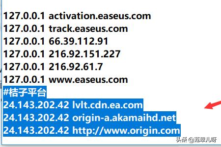 5、进入hosts文件,找到你添加的关于origin平台的描述并删除,如下图所示。