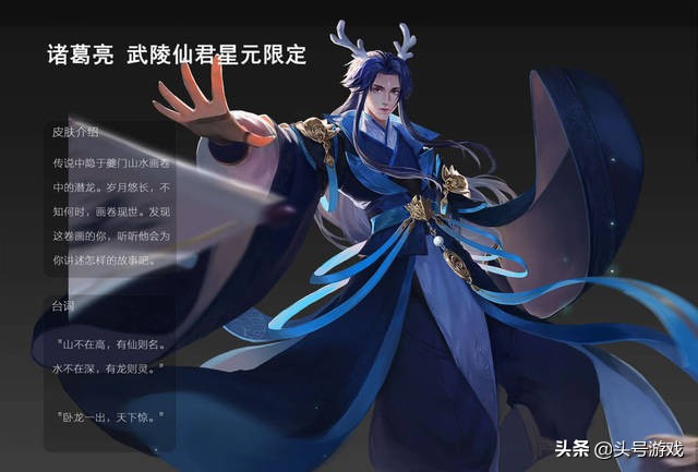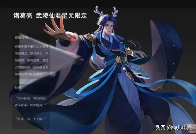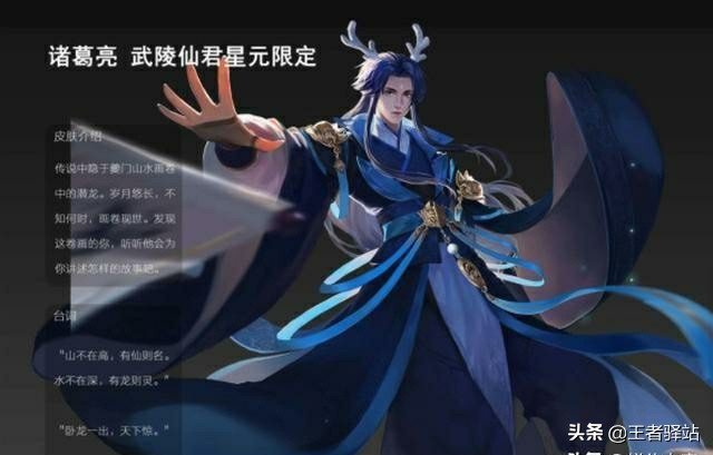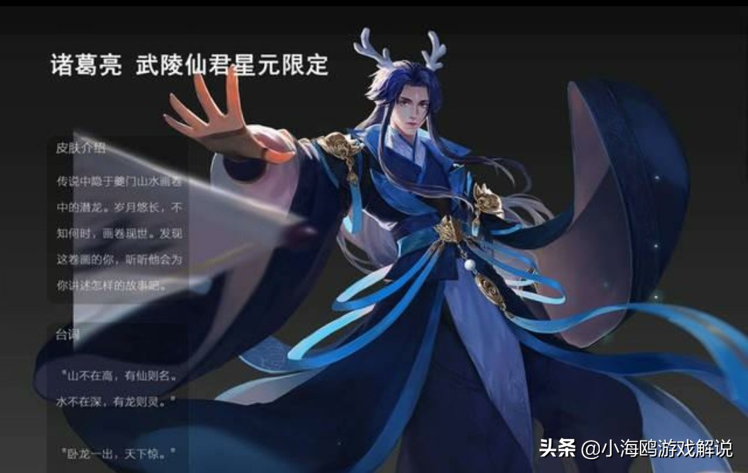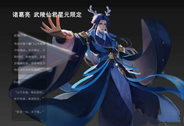 诸葛亮的武陵仙君这款皮肤,虽然不能说是诸葛亮所有皮肤里面手感最好的一款皮肤但绝对是性价比最高的一款皮肤,而诸葛亮武陵仙君这款皮肤在前一段时间也经过投票重返上线了一段时间,相信很多玩家也都购买了这款皮肤,就在前一段时间爆料出这款皮肤呢即将要出星元皮肤了,而且诸葛亮的武陵仙君这款皮肤在后期还要进行优化,相信优化后这款皮肤会更加让玩家喜爱,而这款皮肤的星元皮肤是不是也很帅,头顶龙角,身穿海蓝色衣服是不是很霸气那。