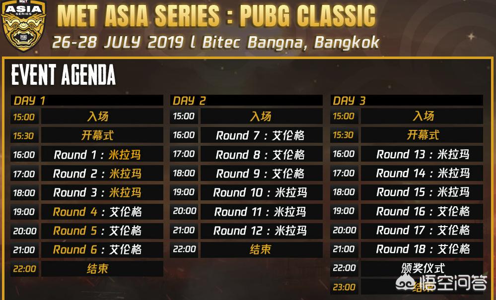 本次MET亚洲邀请赛比赛时间:7月26-28日在泰国曼谷举行,曼谷时间比北京时间晚1小时,比赛队伍会在下午2点入场提前适应设备。