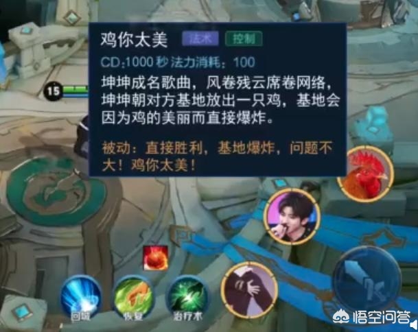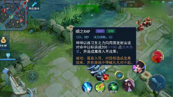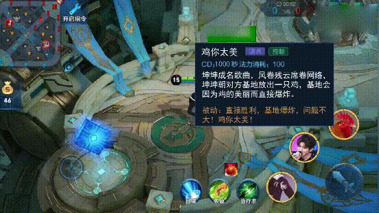 “坤坤”的二技能套用的是狄仁杰的二技能,只不过将狄仁杰的追击令改成了音波,和蔡徐坤喜欢唱歌的特点非常吻合。