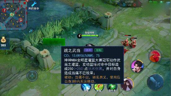 “坤坤”的一技能和嬴政的一技能类似,释放一技能后,会有众多的篮球从天而降,打出一定的范围伤害。“坤坤”的定位应该和嬴政一样,是一名法师。