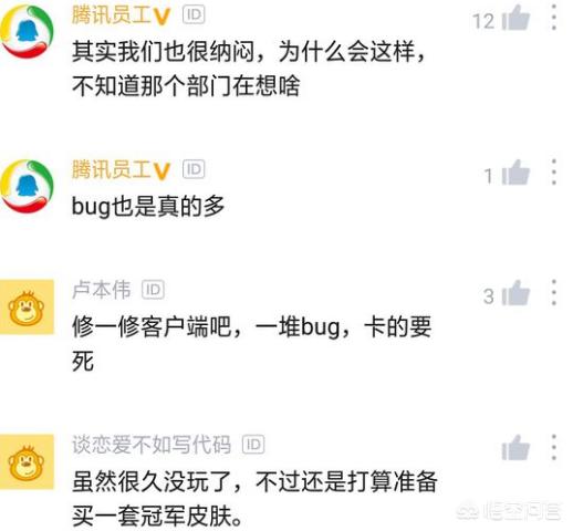 员工也是吐槽BUG是真的多,众所周知近期的客户端版本不是很稳定,总是出现这样那样的BUG影戏游戏体验,不过在我们充值的时候倒是没有什么BUG,如果都按照充值阶段那样来做相信BUG会越来越少吧。tx员工也是指出:游戏部门一向高冷的很;自古游戏优化都是越来越好,而对于lol来说却是越来越糟、