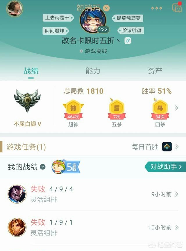 这位老哥真的是为了我们LOL玩家操碎了心,怕我们大家不知道最近这个改名卡限时五折的活动,还特意把自己的ID改成这样来告诉我们,不过这位铁子最近战绩有点惨,哪位老哥碰到他了对他好点。