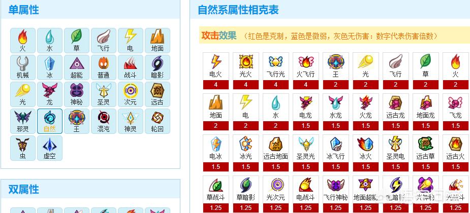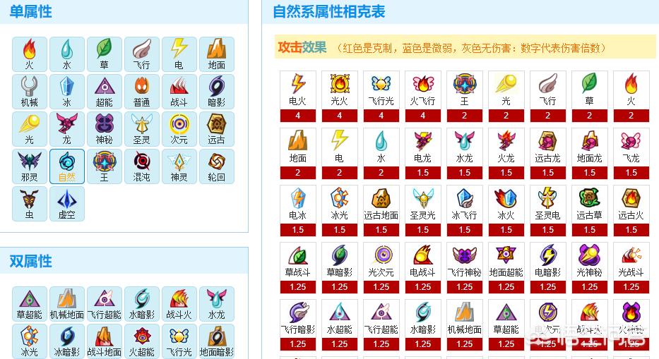 自然系:四倍克制有四个,二倍克制八个。被四倍两个、二倍五个。自然系的广不是吹,赛尔号最占便宜。单方面克制83个属性,当然被克也多,有64个。但在被克这面,还是1倍以下的占大多数,所以说自然系是个万金油,基本上见了面好像都能沾上克制。虽然有时候双方互克吧,但好像意义并不大,完全在于看谁先出手。而且就拿常见的一些沾边自然系的精灵来说,它们都各有长处。