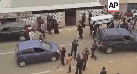 这段略显“荒诞”的视频来源于非洲加纳,黑人抬棺是当地人办理白事的习俗。只要是有人去世,那么就会聘请专业团队,来以这种方式送走亡灵。因为他们觉得,人的一生之中,最重要的就是出生和死亡,但死亡并不代表伤心,也可以用欢乐的音乐送走,也就是喜丧。