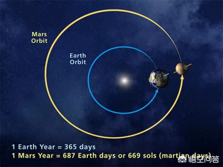 关于火星的基本情况,本文就不多说了。在太阳系中,地球和火星都是围绕着太阳旋转,由于两者的椭圆形轨道半径不同,环绕轨道周期不同,致使地球和火星之间的直线距离(两点之间线段最短)存在周期变化的特征。地球和火星之间最近时的距离5460万公里,最远时的距离达4亿公里。相应地,光从地球上到达火星最快要180秒左右,最慢则要大约22分钟的时间。进一步说,地球上的人向火星上的宇航员每发出一个通讯信号,最快也要等个大约7分钟,才能收到来自火星的信号回应。所以,人类准备登陆火星前,应该是选在地球与火星之间的距离尽可能近的时候,择机向外太空发射飞船,直奔火星。