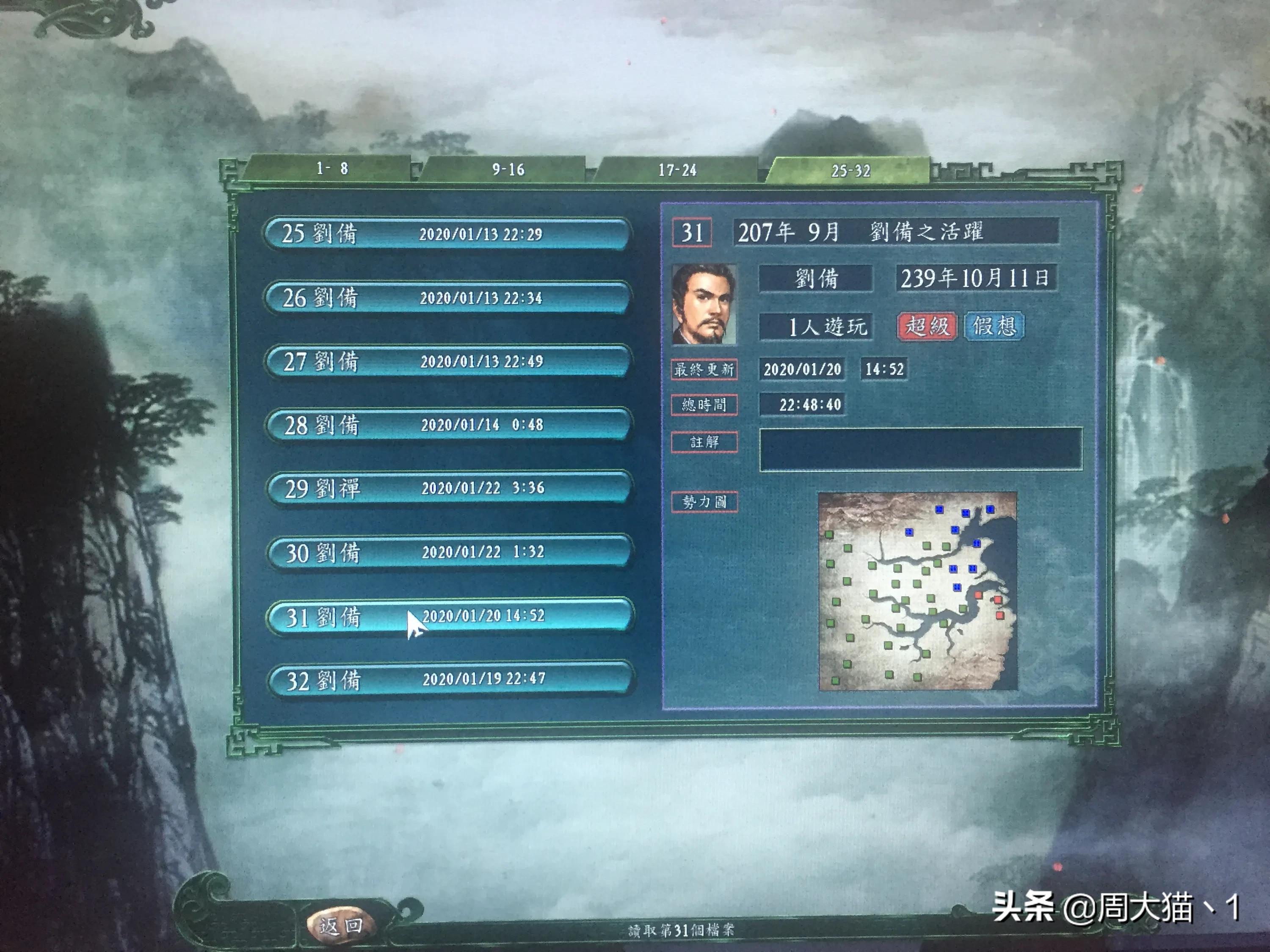 打电脑,前面100天是安全期,经济建设好,超级难度电脑兵可以理解是无限,所以不能拼消耗,建议最好控制+堵路口消耗兵粮,20个回合自退,如果三面受敌就要分配好武将,那些防御,那些进攻,关键节点sl