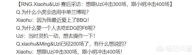 根据题主所说,小虎一句话透露了UZI退役在即,灵夕特意查了那句话:小虎想跟UZI冲击三百场比赛。很多人从这句话解读出来UZI可能打完今年就要退役,灵夕觉得这有点过度解读了。