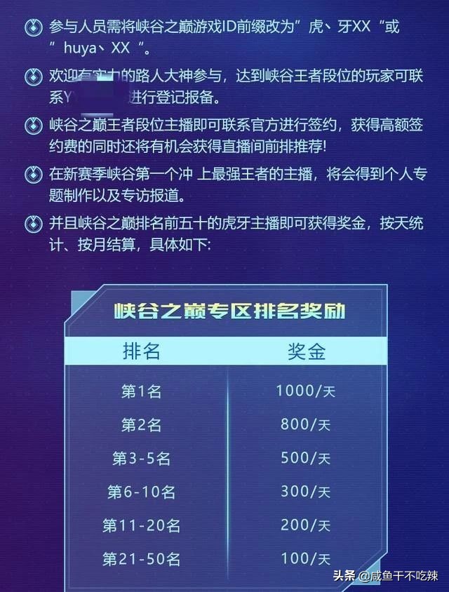 其次呢,虎牙英雄联盟板块有个政策:打上国服第一,每天可以得到1000元现金奖励,如果能够保持一个月的花那就是3万。