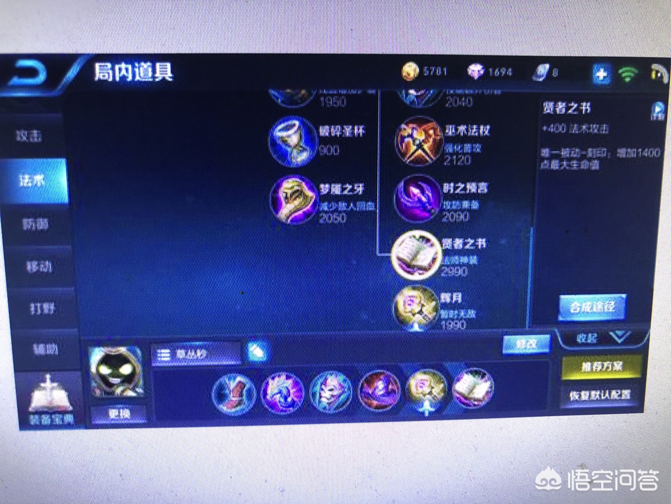 出装推荐秘法之靴+回响之杖+博学者之怒+贤者之书+虚无法杖+时之预言