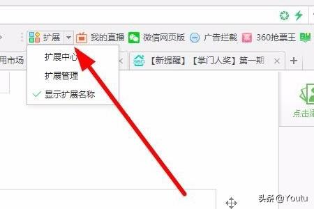 4、如果没有翻译这个插件功能,可以点击----扩展---扩展中心。