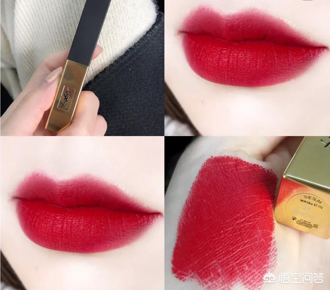我觉得这个ysl小金条中巨显白的颜色了,偏冷调的正红色,真的是无敌显白了,不挑肤色。是那种雾面哑光质地,感觉不是特别的干,但最好还是要做好唇部打底!