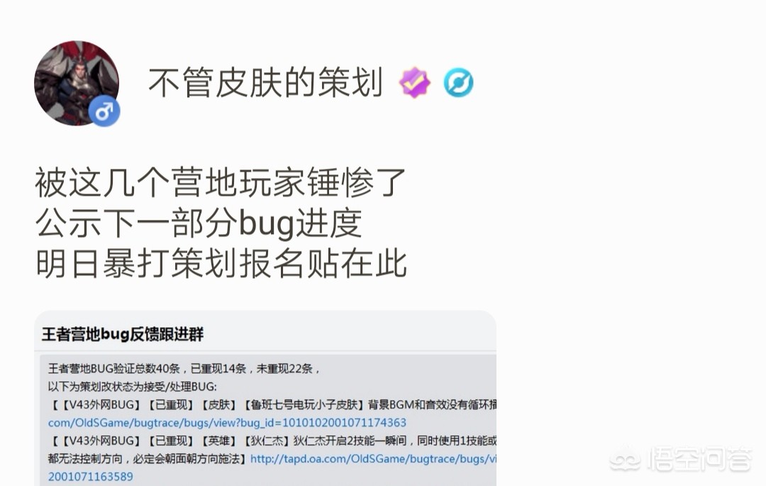 《王者荣耀》策划被营地玩家锤惨,表示近期会处理十多个游戏Bug!你怎么看