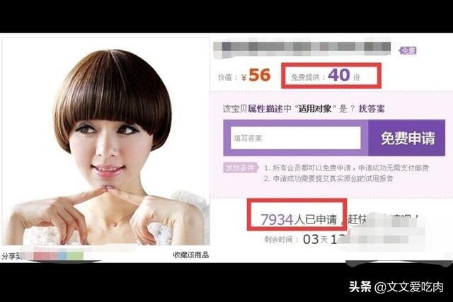 2、从最便宜的开始申请。我提出的策略是,先从100元以下的试用品入手,这类试用品提供的试用名额比较多,甚至还有提供上百份的。比较容易中。中了之后务必为每一个申请成功的试用品提交图文并茂、详实可信的试用报告,能评为优质试用报告更好。这一过程我称之为“攒人品”,当你申请成功的试用品越来越多,并且试用报告都还不错的售后,就可以尝试申请高价值的试用品了。