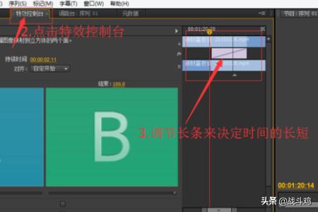 4、选中特效控制台,调节视频切换效果的时间,如图所示