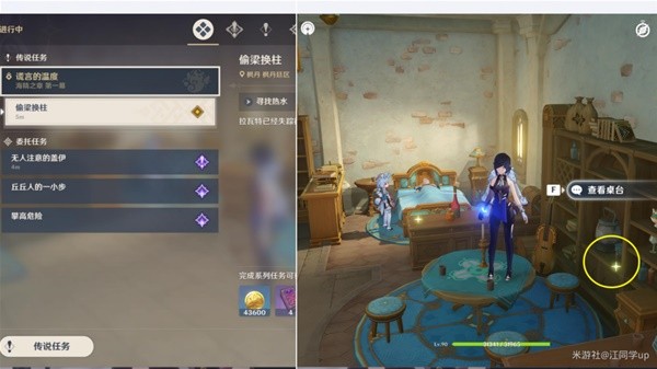 (2)然后是做到【偷梁换柱】【寻找热水】时,调查一下桌台右边【置物柜】发光点即可